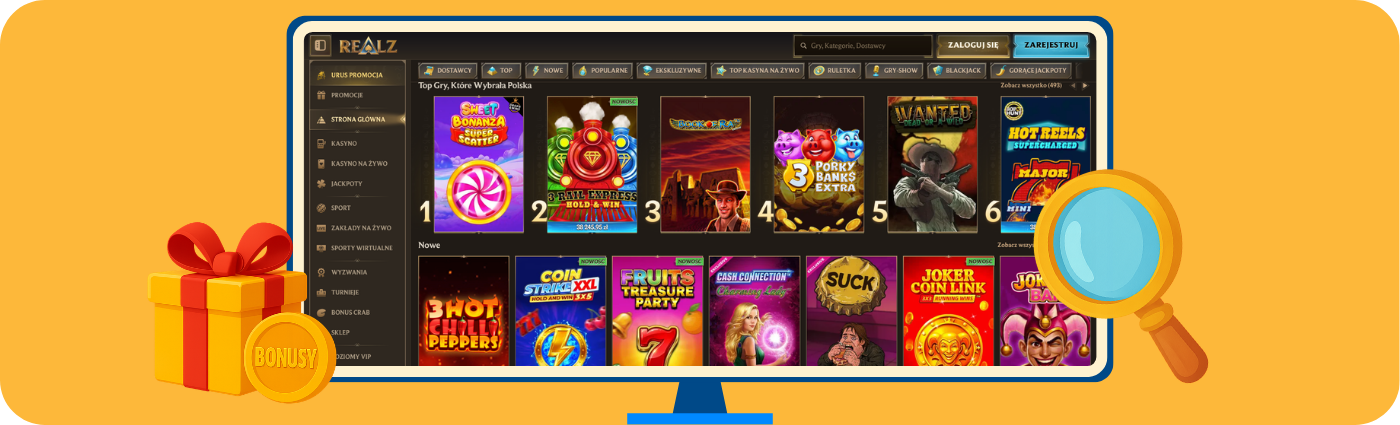 Platforma działa w języku polskim, dlatego już na starcie jest bardziej przystępna dla użytkowników z Polski. Choć kasyno Realz funkcjonuje na licencji zagranicznej, oferuje standardy techniczne i organizacyjne typowe dla dużych, międzynarodowych operatorów. Na uwagę zasługuje przede wszystkim skala oferty, ponieważ liczba dostępnych gier idzie w tysiące. Zatem jest to kasyno zaprojektowane raczej dla graczy, którzy chcą mieć „wszystko w jednym miejscu”.